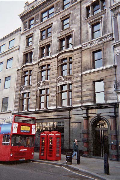 The entrance to Canadian Pacific House. CP Ships' corporate offices A nice steak house is to the right, and Piccadilly Circus several blocks to the right.