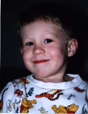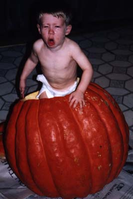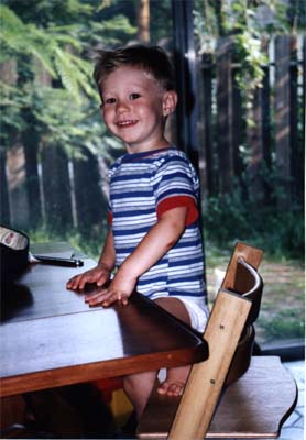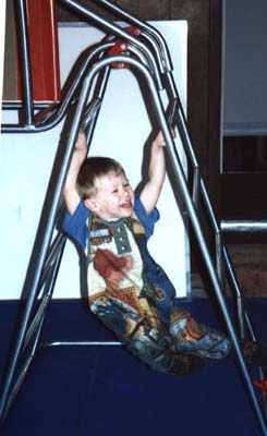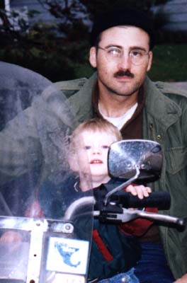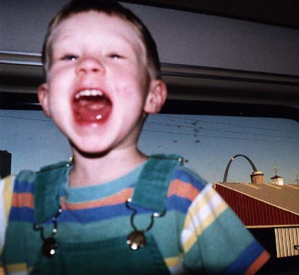 | Painting at the Dinner Table | and Close Up | Swinging on my Gym Ladder | Not Happy, inside Dad's 120 lb. Pumpkin (It seemed like a fun place, at the time..) | My First Harley Ride, with Uncle Billy! | I LIKE Riding the Train to Chicago! (Here, going east past the Arch, into Illinois) | Another Smile, Before Bed |